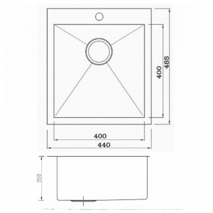 Мойка Seaman Eco Marino SMV-Z-440, стандартная комплектация, матовая нержавеющая сталь, плоский кант, квадратная, с платформой под смеситель