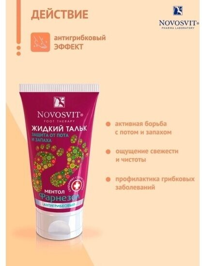 Novosvit Жидкий тальк Фарнезол защита от пота и запаха Антигрибковый, 50 мл