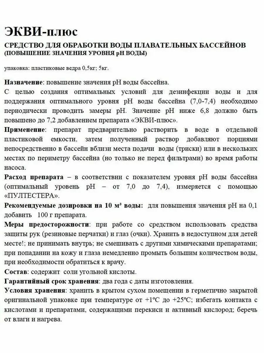 Экви плюс 0,5 кг., средство для повышения уровня ph воды, без хлора, химия для бассейнов