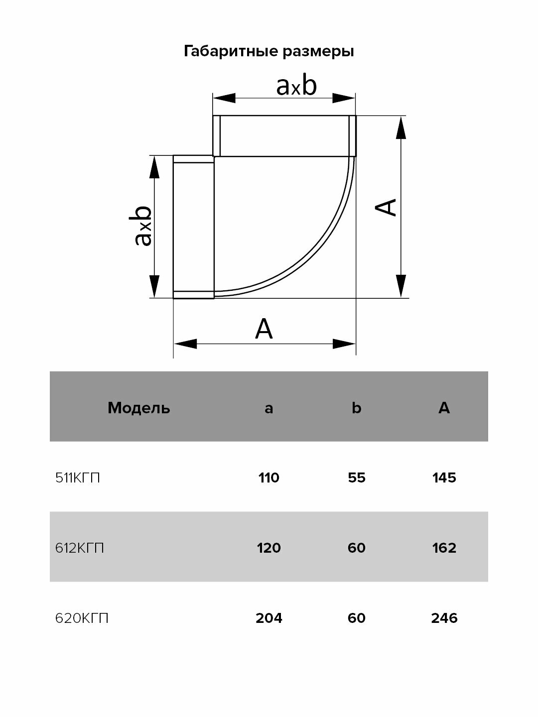 620КГП, Колено горизонтальное 90° для плоских каналов 60х204 мм