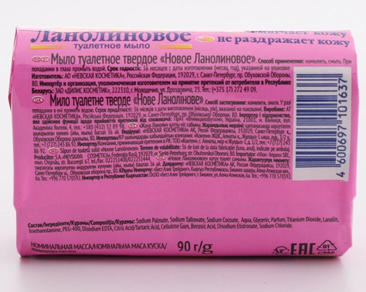 Мыло Невская косметика, Новое ланолиновое, 90 г