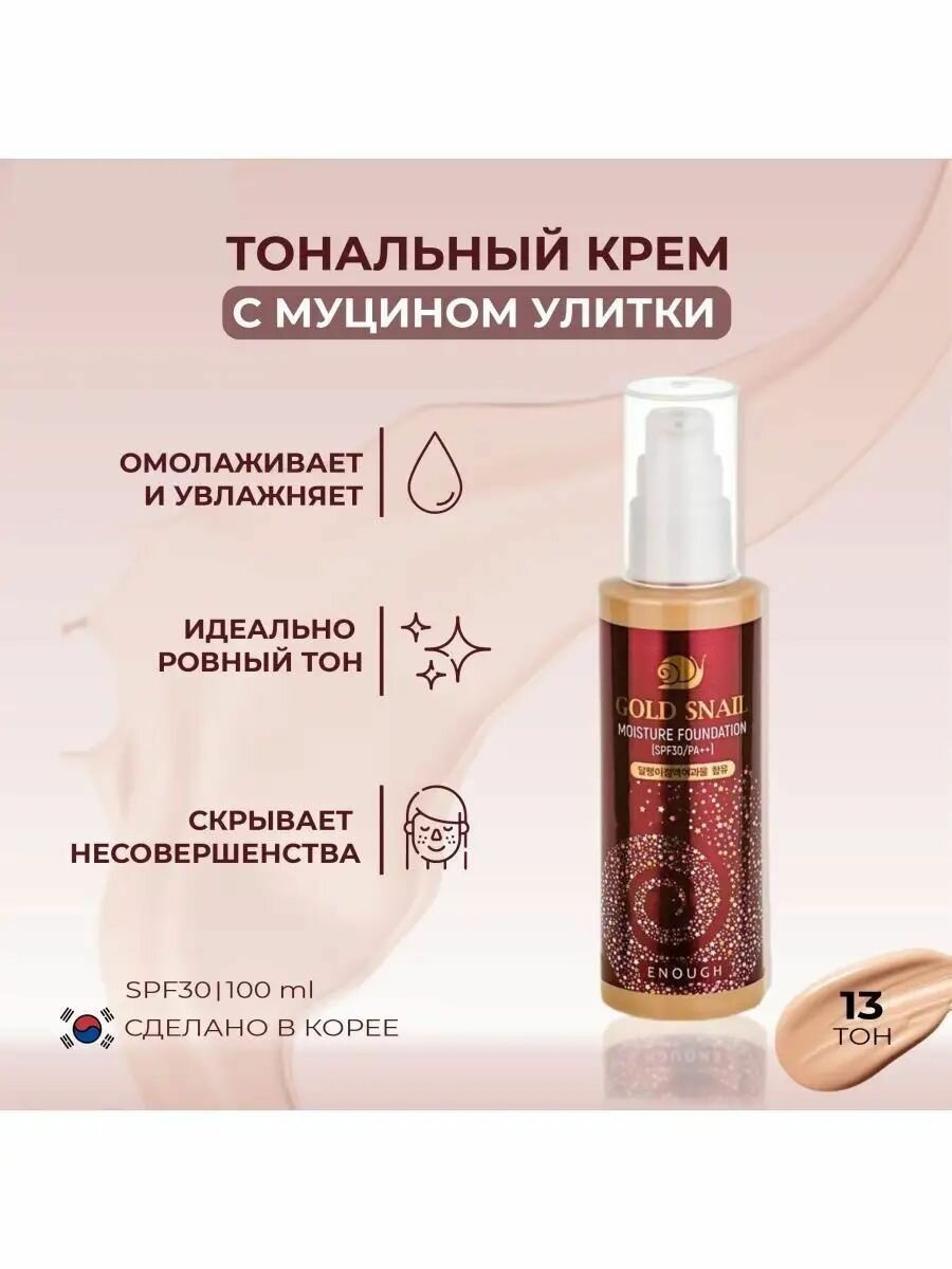 Enough Тональный крем Gold Snail Moisture Foundation, SPF 30, 100 мл/100 г, оттенок: 13 light beige