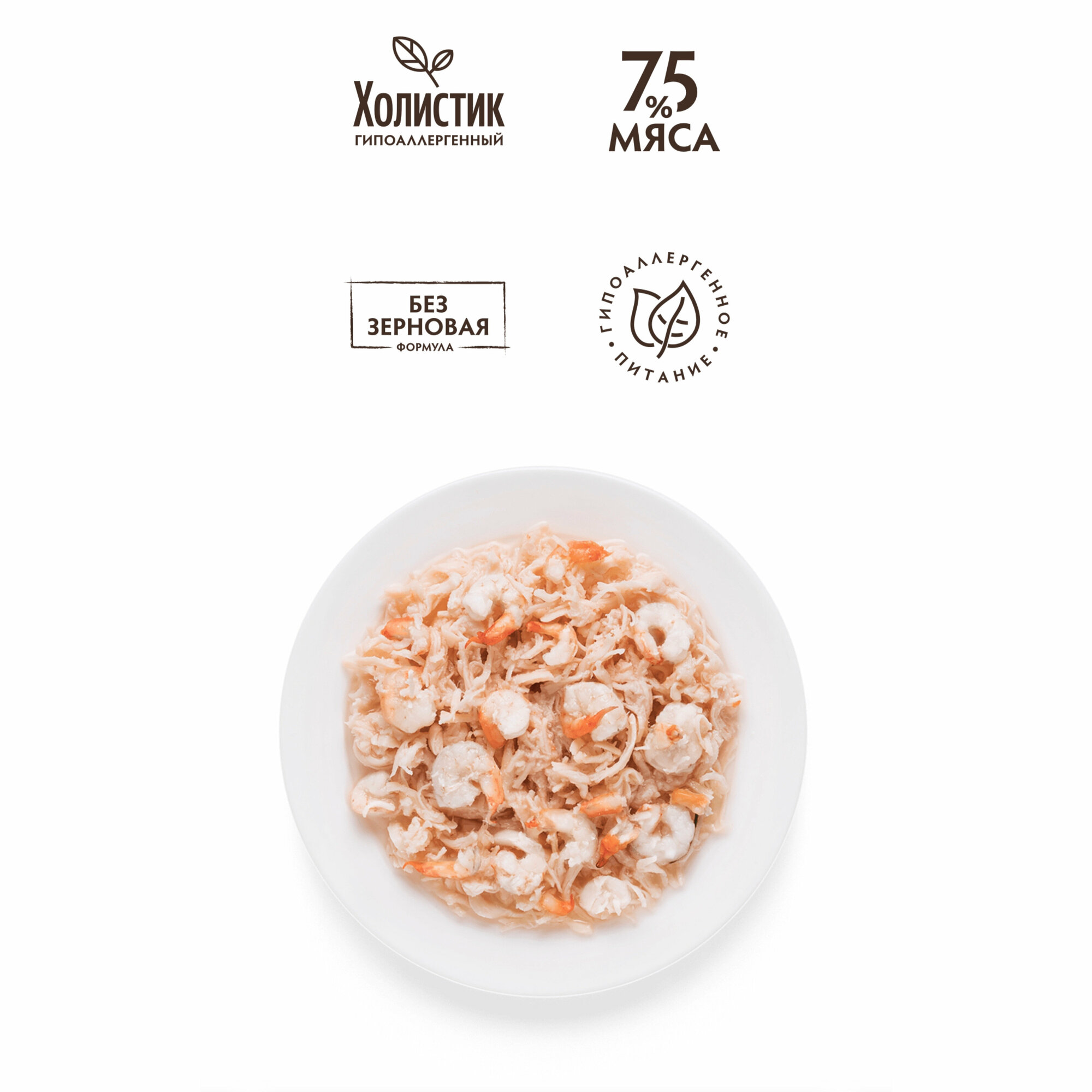 Гипоаллергенный влажный корм Grandorf для кошек Куринная грудка с креветками, (6шт х 70г)