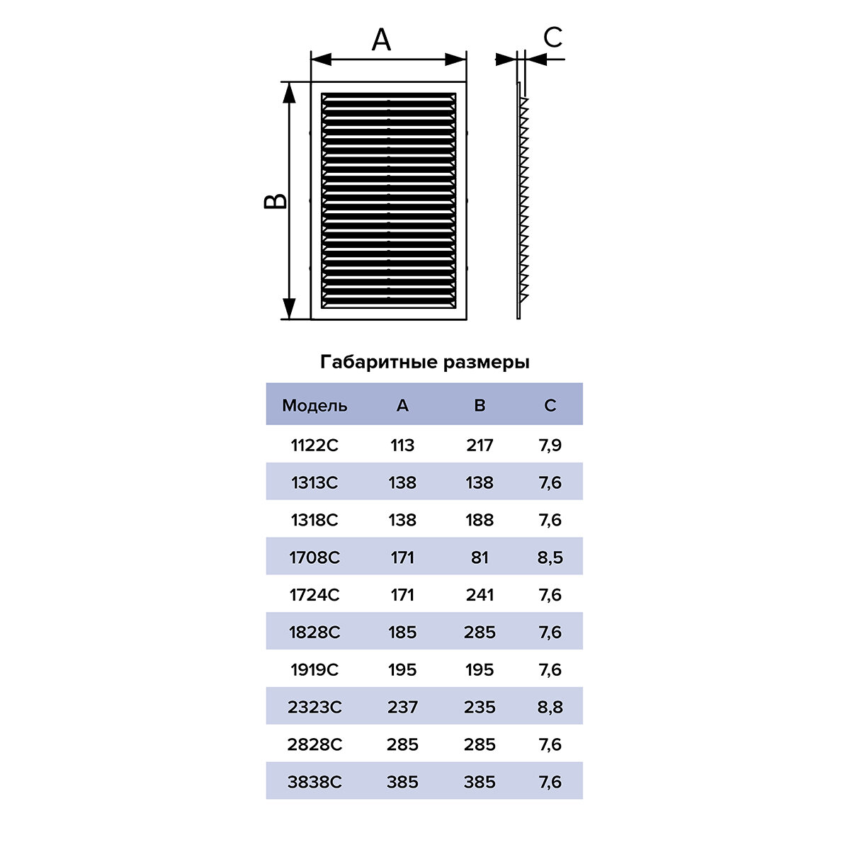 Вентиляционная решетка ERA 2121П 208 x 208 мм