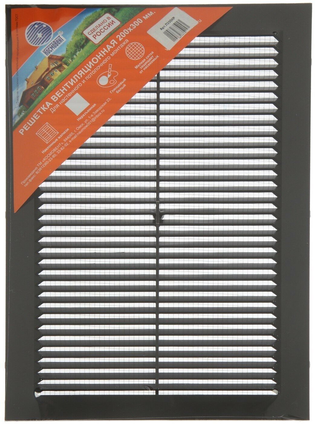 Купить Решетка вентиляционная "КосмоВент" Люкс Л200КР, 200х300мм, с сеткой, неразъемная, коричневая