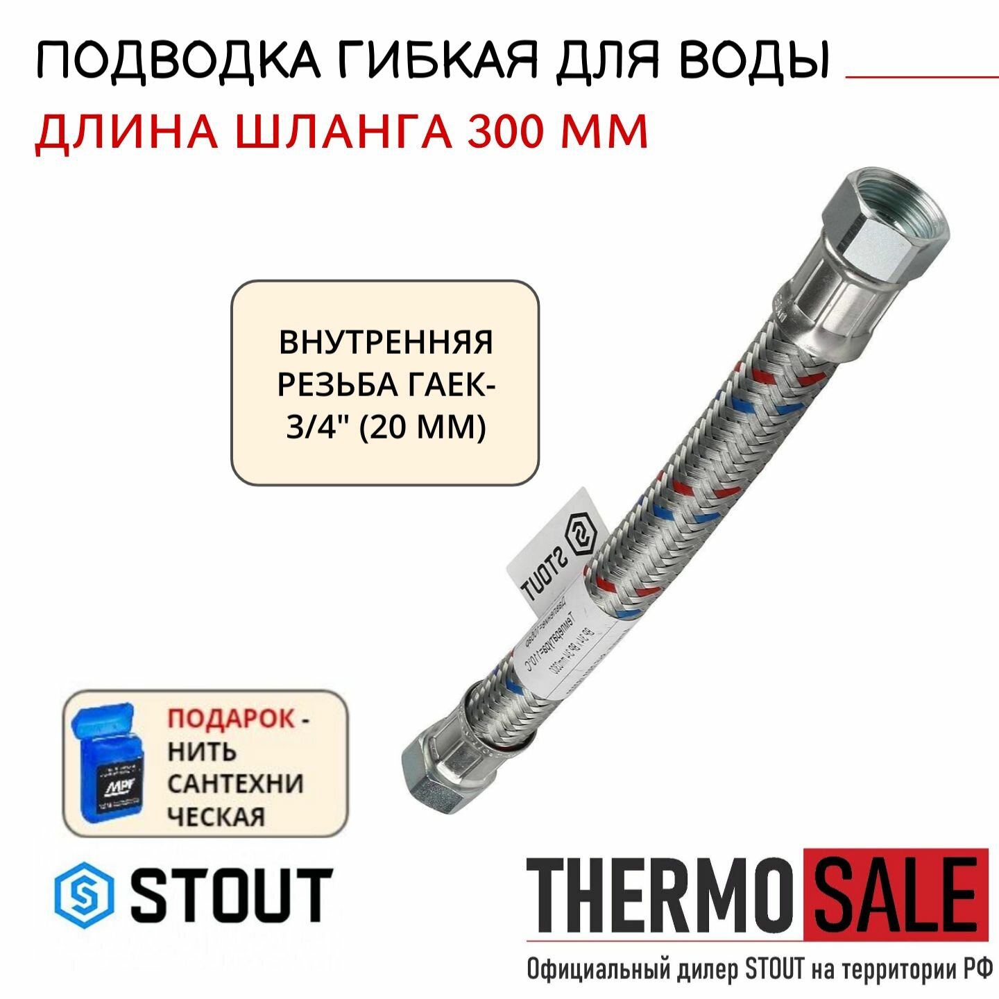 SHF-0303-182020 STOUT Гибкая подводка для воды ВР 3/4 х ВР 3/4, длина 300 мм