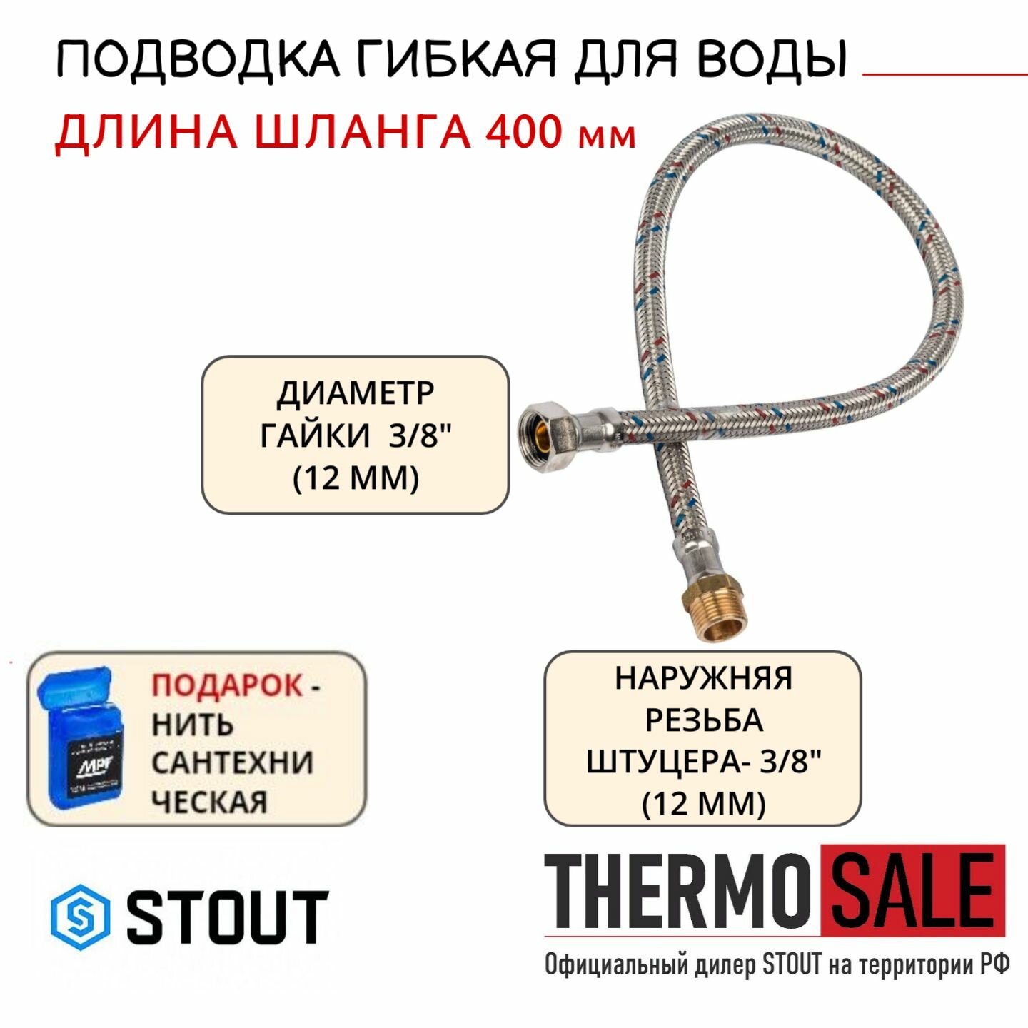 STOUT Гибкая подводка для воды НР 3/8 х ВР 3/8 400 мм STOUT SHF-0055-081010 RG008P0SIFLTLN