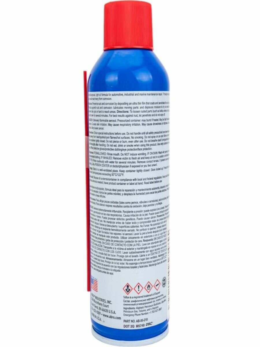 Смазка проникающая (жидкий ключ) ABRO AB80 Spray Lubricant & Penetrating Oil, многоцелевая, с тефлоном, аэрозоль 400мл, арт. AB-80-10-R