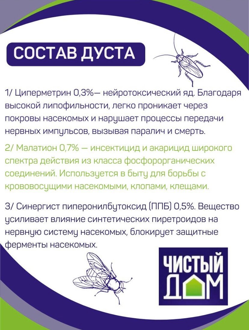 Дуст от тараканов, блох, клопов, муравьев Чистый дом Двойной эффект