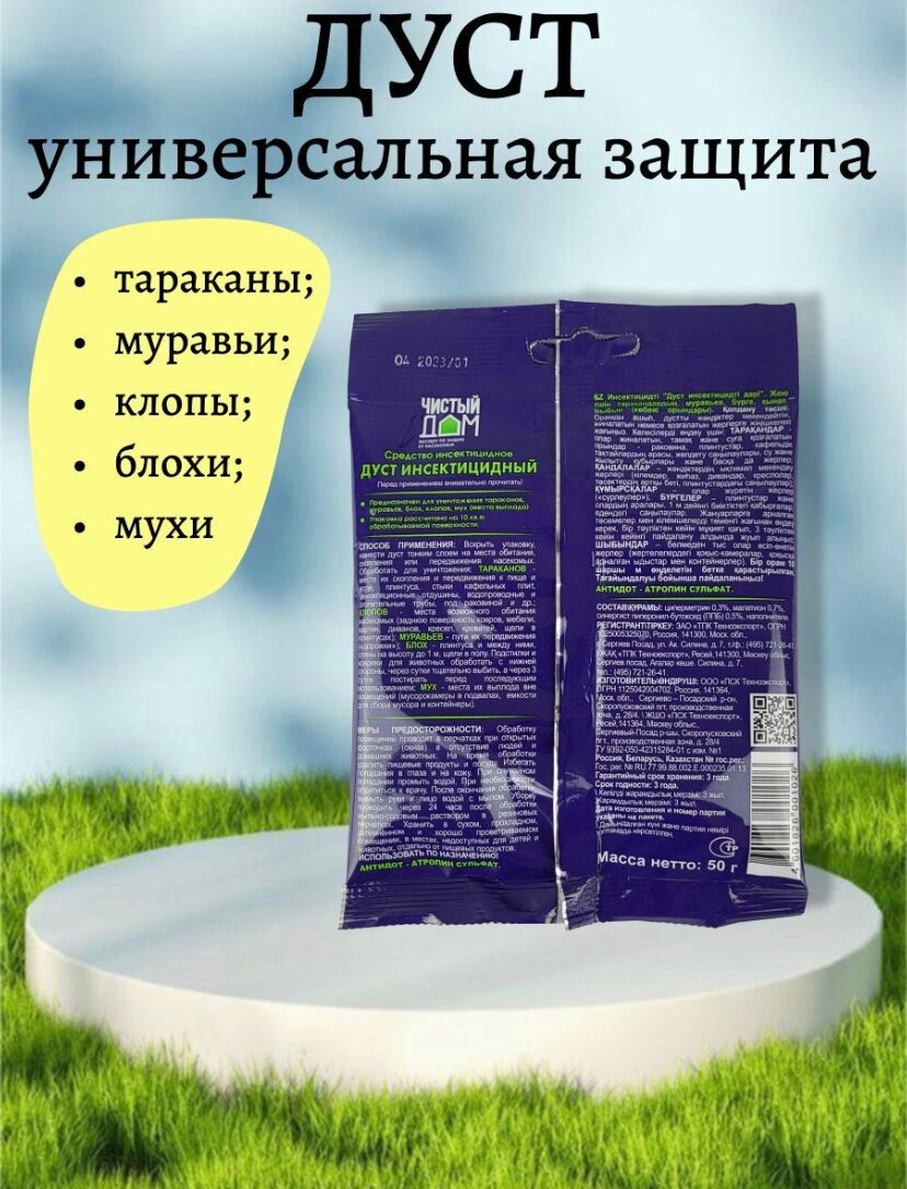 Дуст Чистый Дом отрава от ползающих и летающих насекомых, тараканов, муравьёв, блох, клопов, мух 50 г - 2шт