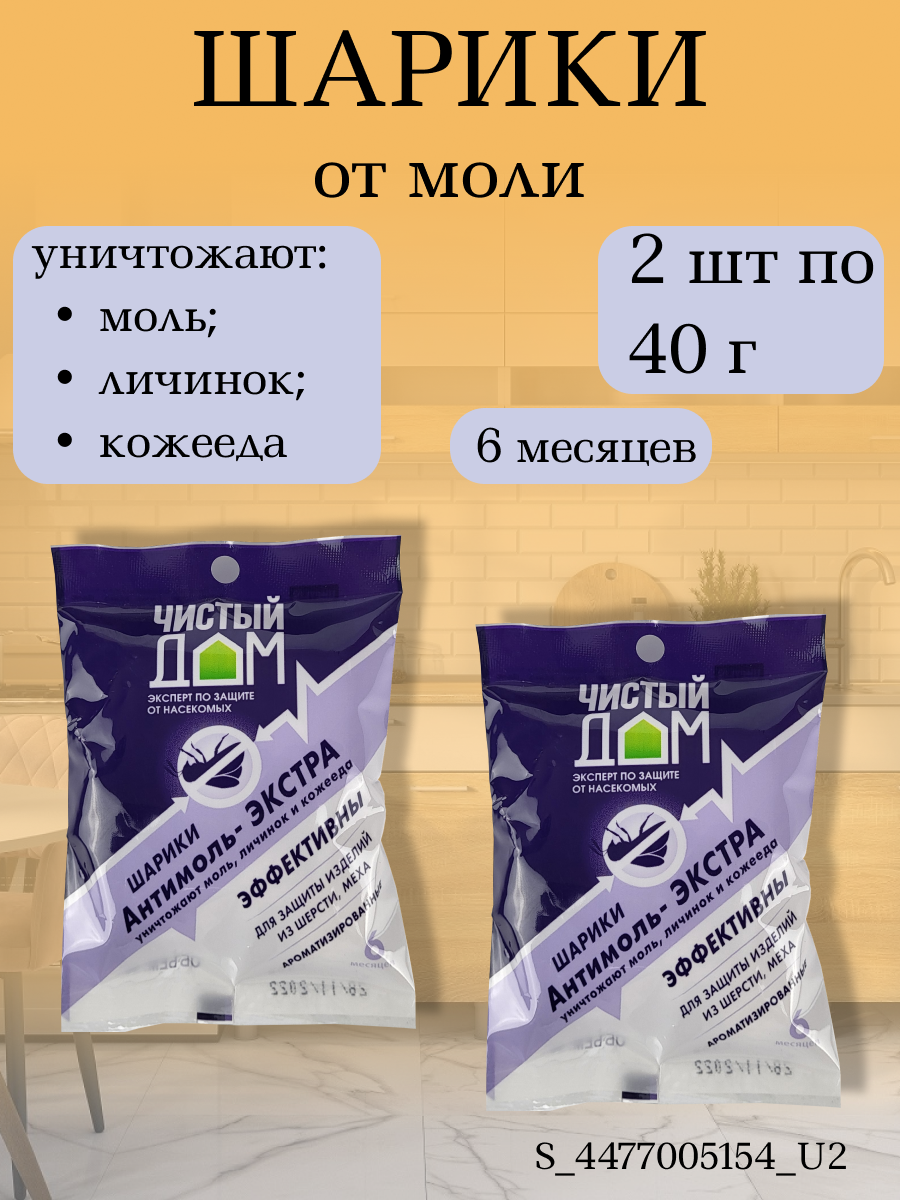 Шарики от моли "Чистый дом" Антимоль Экстра, пакет, 40 г(2 шт.)