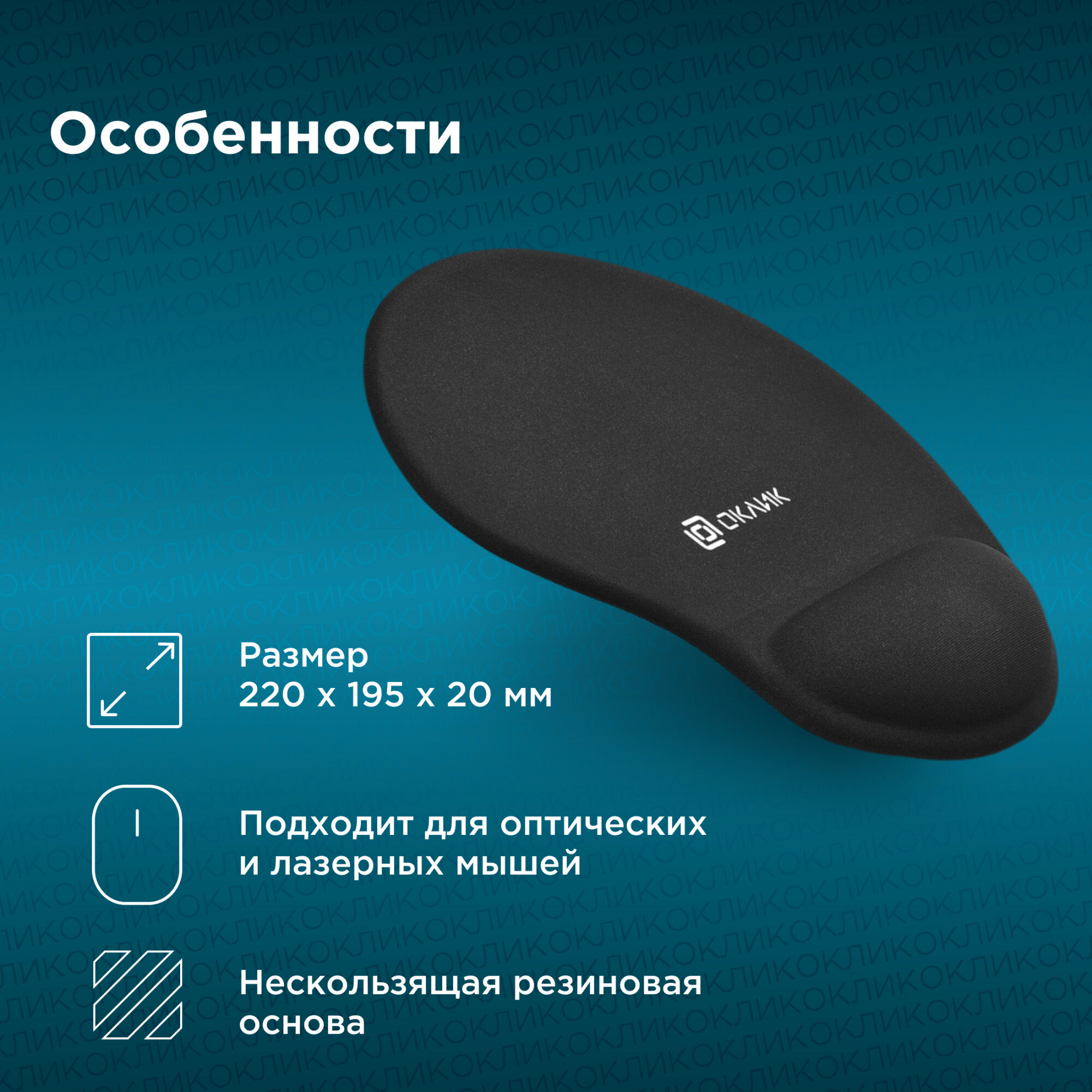Oklick (ok-rg0550-bk) Коврик для мыши с гелевой подушкой под запястье (1088636) .