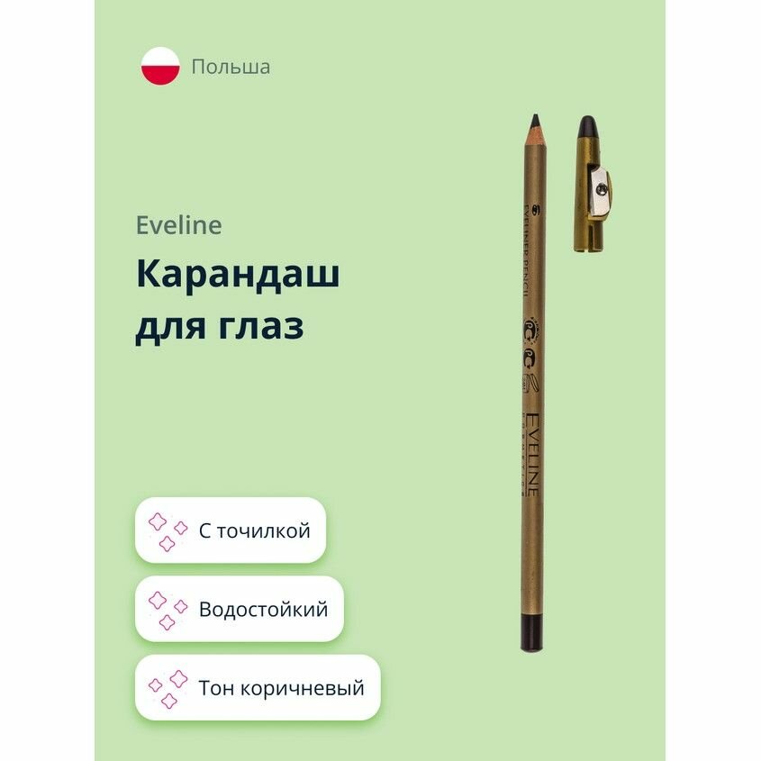 Карандаш для глаз EVELINE EYELINER PENCIL с точилкой водостойкий тон коричневый