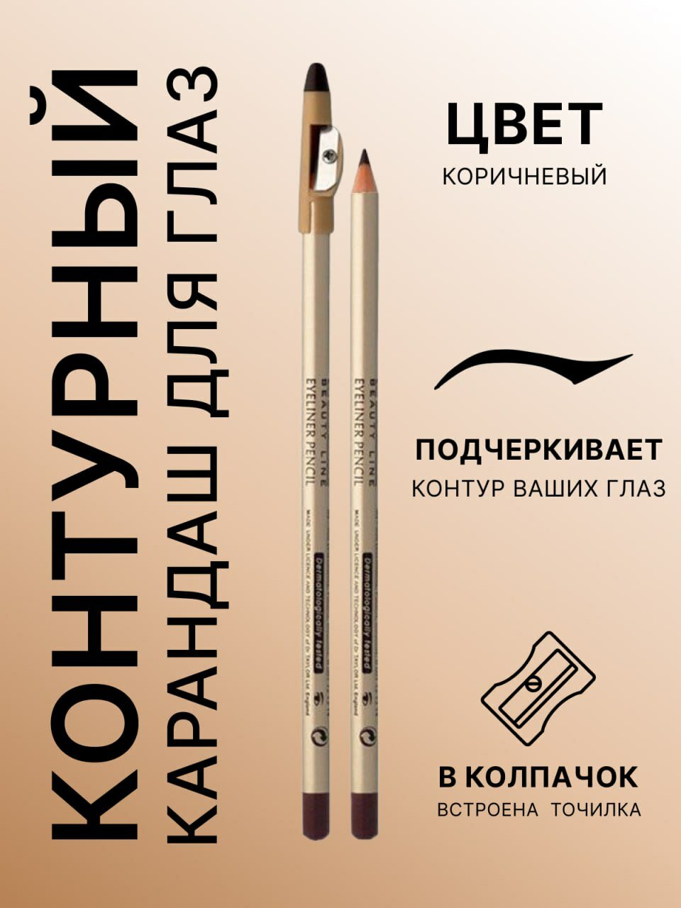 Контурный карандаш для глаз EVELINE с точилкой, brown