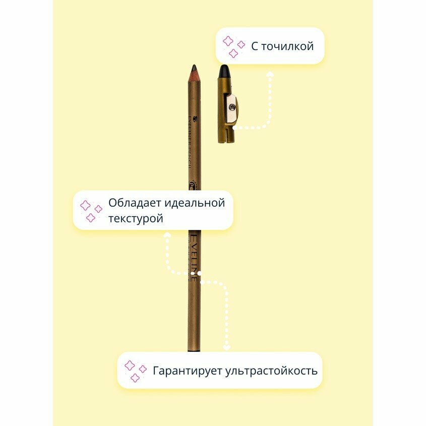Карандаш для глаз EVELINE EYELINER PENCIL с точилкой водостойкий тон черный