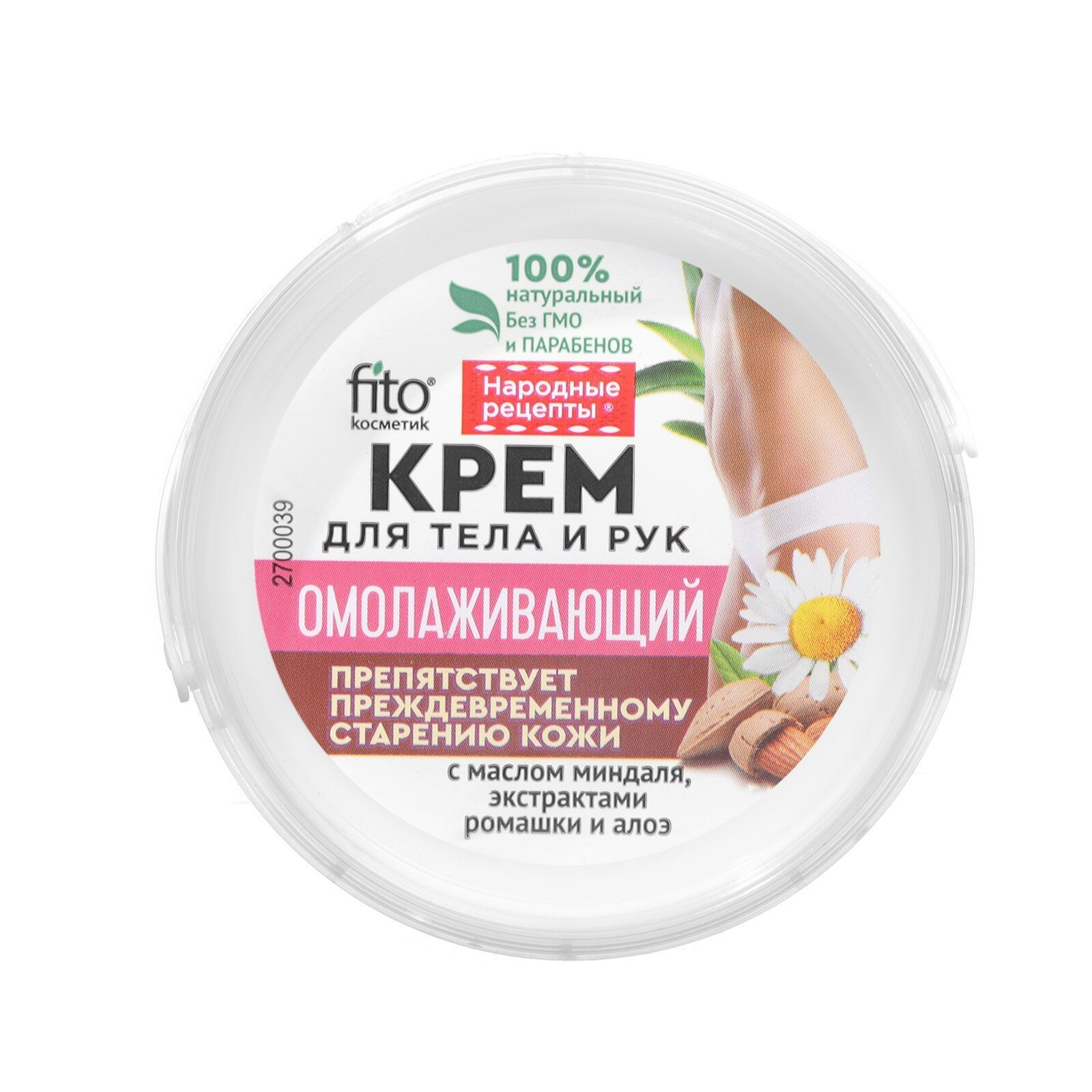 Купить Fito косметик Крем для тела Народные рецепты Омолаживающий с маслом миндаля, экстрактами ромашки и алоэ, 155 мл