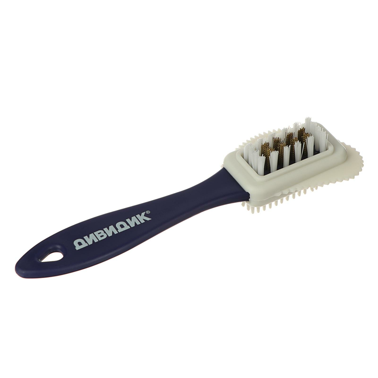 Отлично счищает загрязнения особенно с замшевой обуви, не плохо зачищает залоснившиеся места на дублёнке и нубуке. Недостатки: При активном применении может сломаться ручка. Щётка ДИВИДИК пригодна для ухода за изделиями из замши и нубука. |
