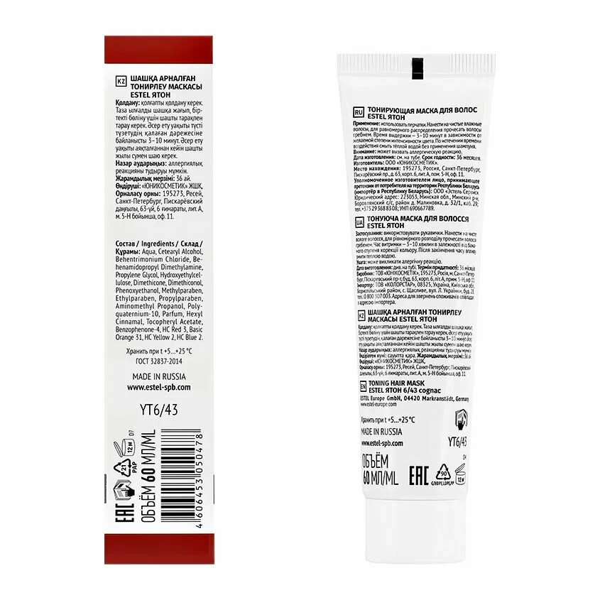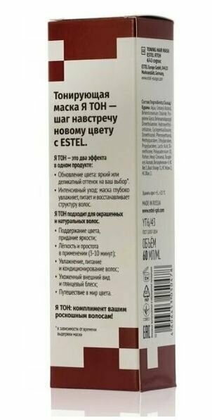 ESTEL Я Тон Маска для волос тонирующая, оттенок 6/43 Коньячный, 60 г, 60 мл, туба