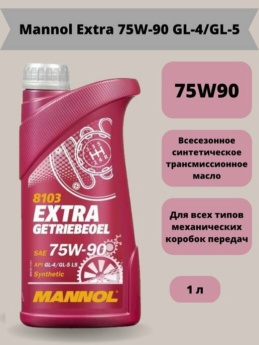 Масло Трансмиссионное Mannol 8103 Extra Getriebeoel 75W-90 Синтетическое 1 Л (Gl-4/Gl-5) MANNOL арт. MN8103-1