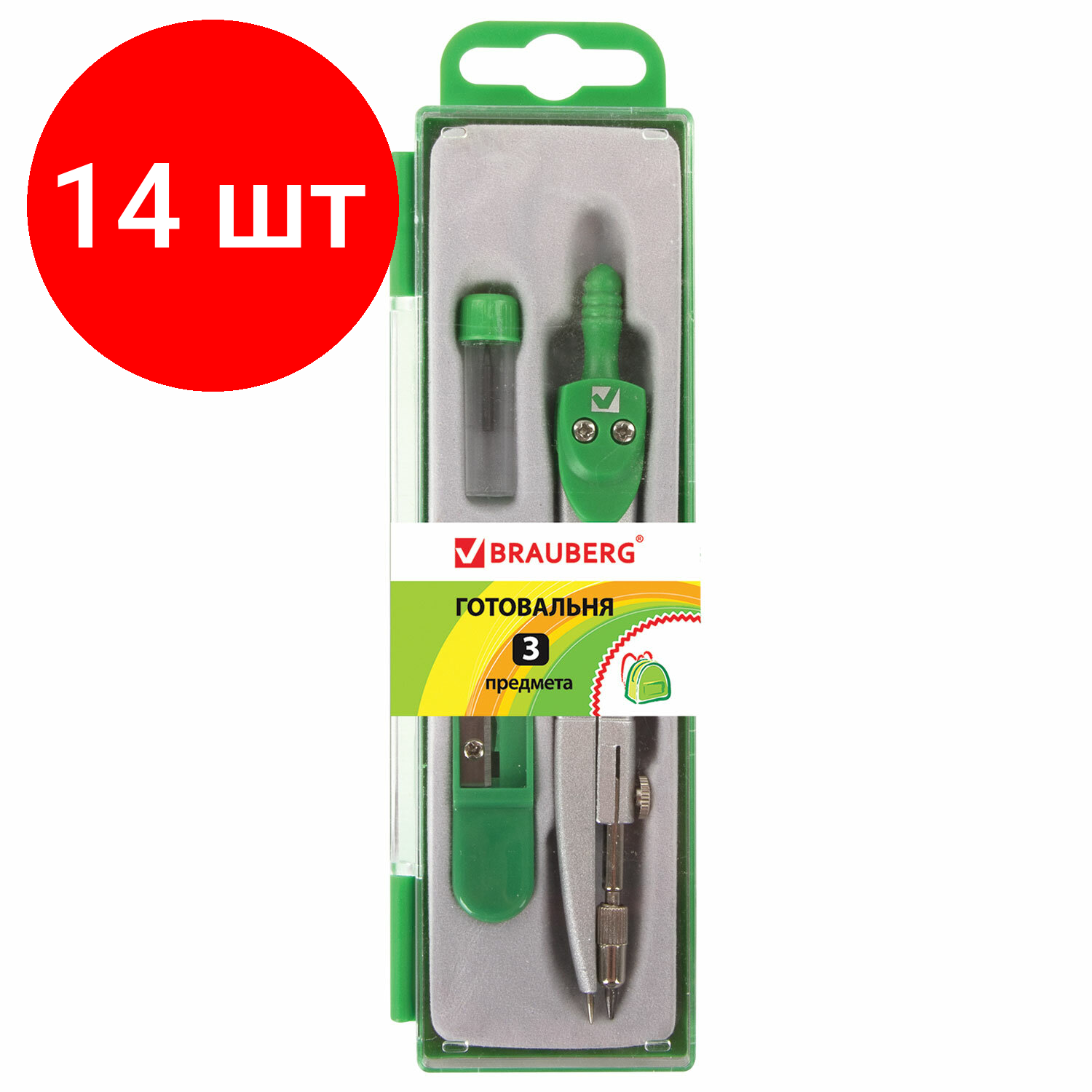 Купить Комплект 14 шт, Готовальня BRAUBERG "Klasse", 3 предмета: циркуль 125 мм, точилка, грифель, пенал с подвесом, 210660