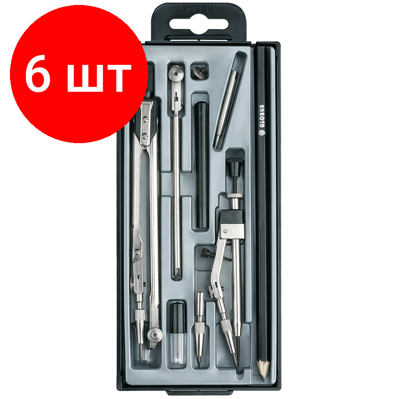 Купить Комплект 6 шт, Готовальня Globus "Technica", 9 предметов, циркуль 125мм, пластиковый футляр