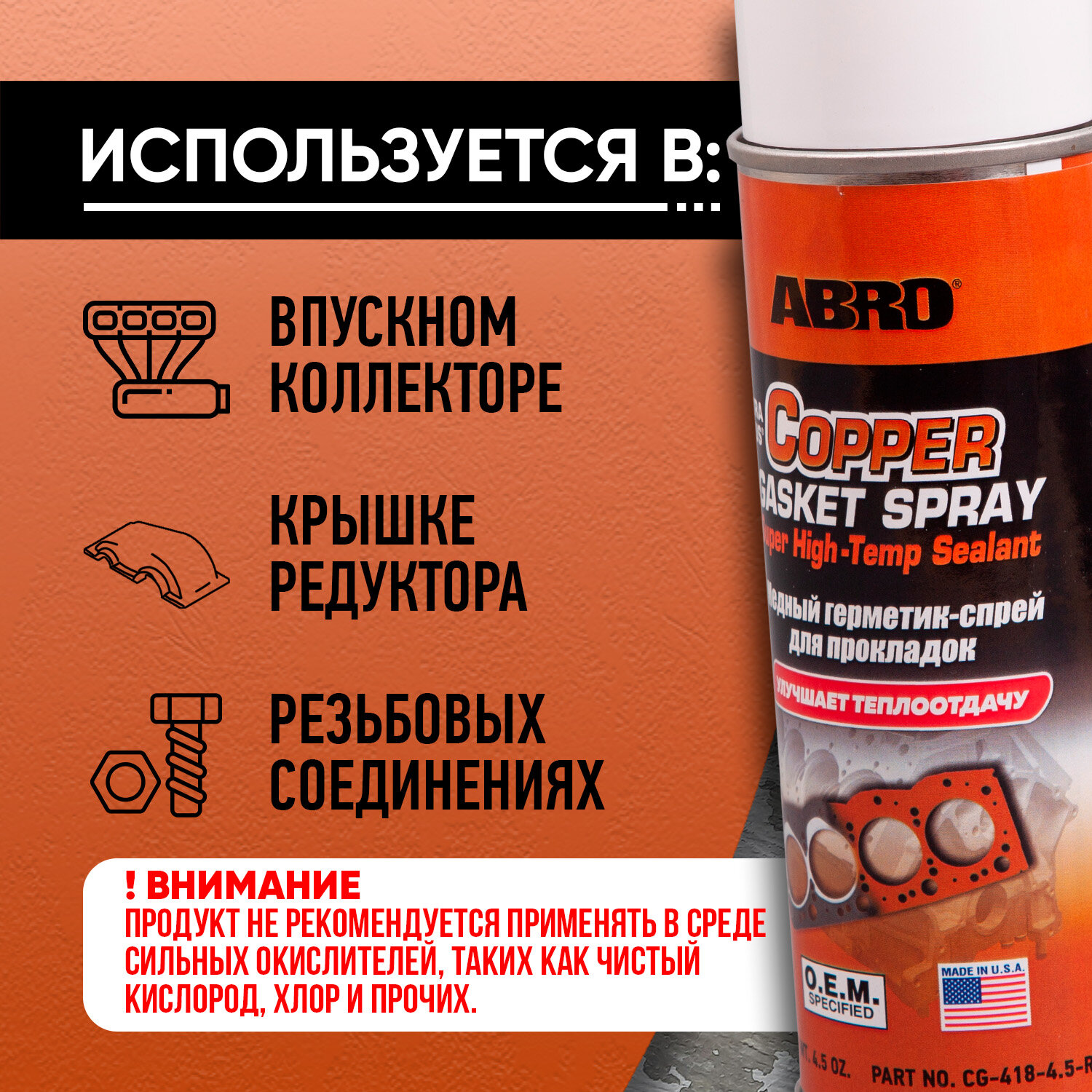 Купить ABRO Медный герметик - спрей для прокладок 128г CG-418-4.5-R