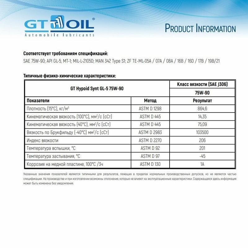 | Производитель | GT OIL |