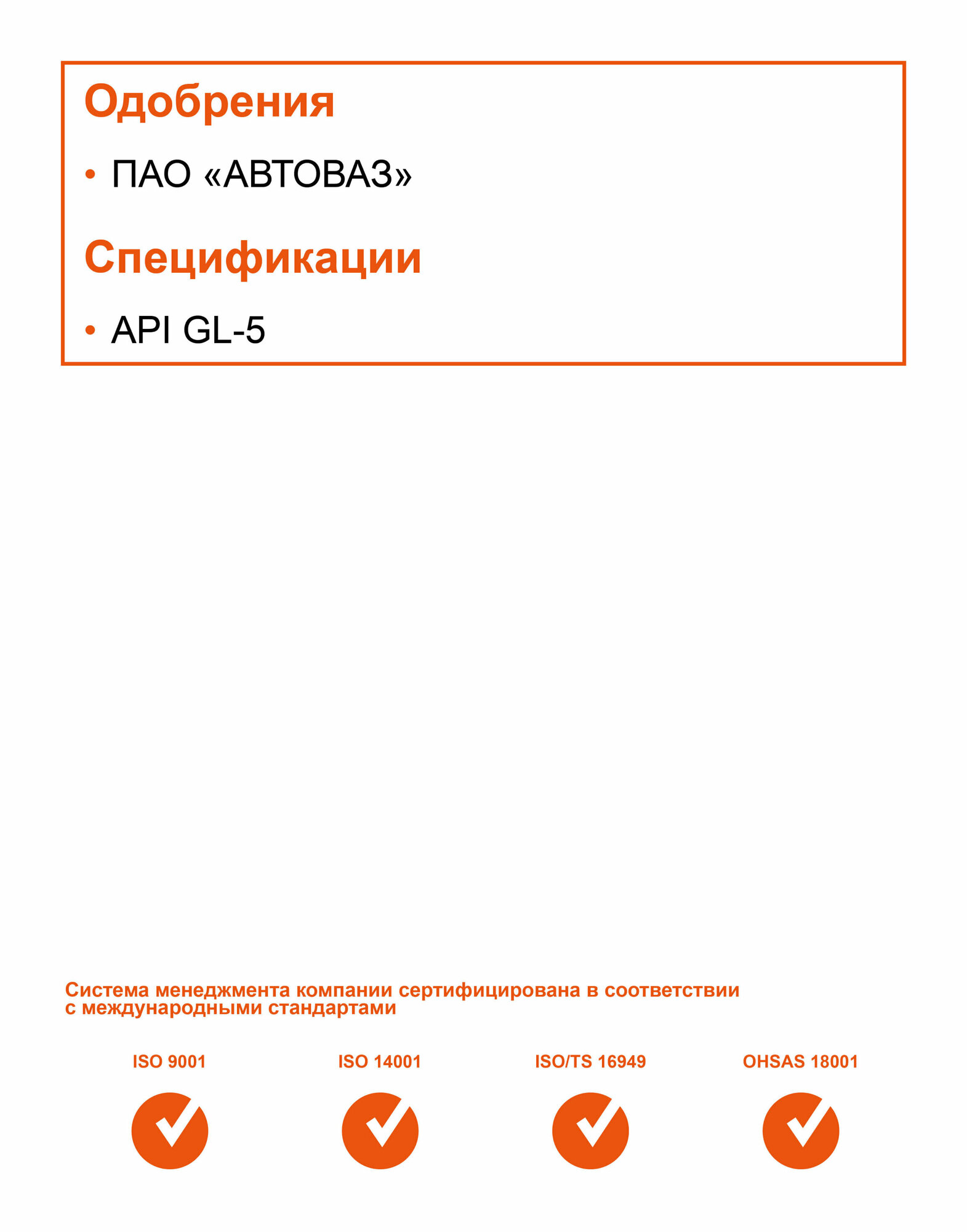 | Стандарт API | GL-5 |