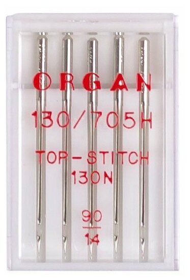 Иглы для швейной машины ORGAN Top-stitch, 5 шт, в блистере, № 90