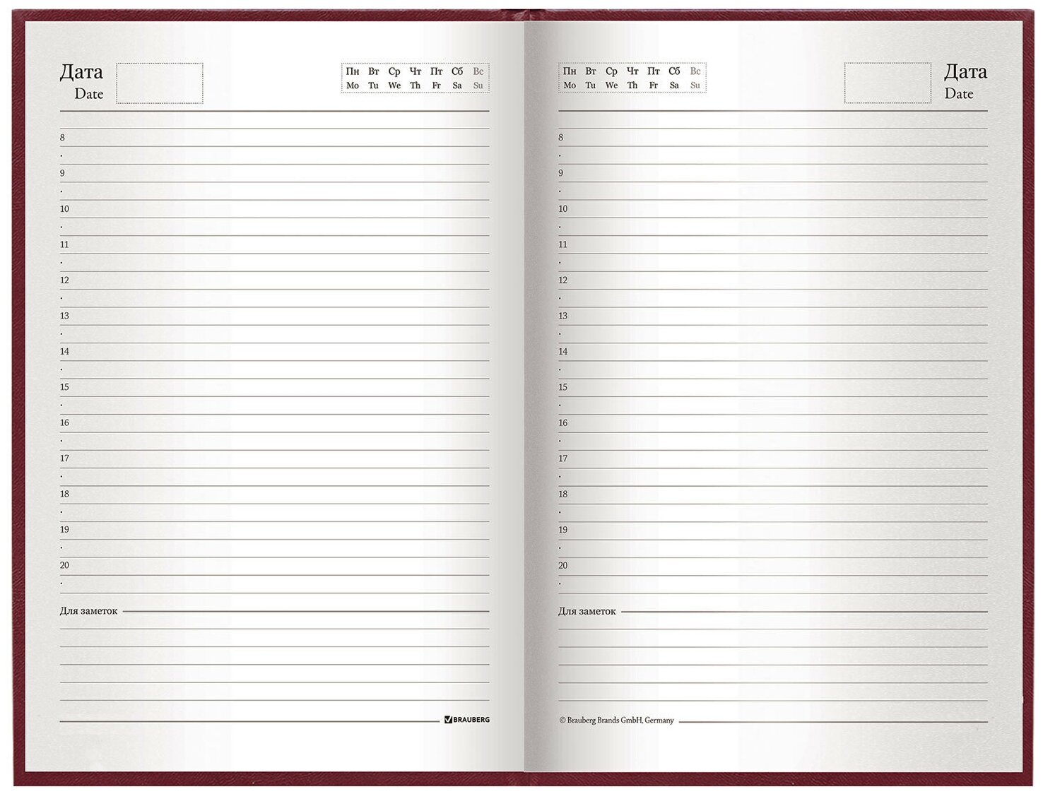 Ежедневник BRAUBERG недатированный, А5, 145х215 мм, 160 л., обложка бумвинил, бордо, 126541