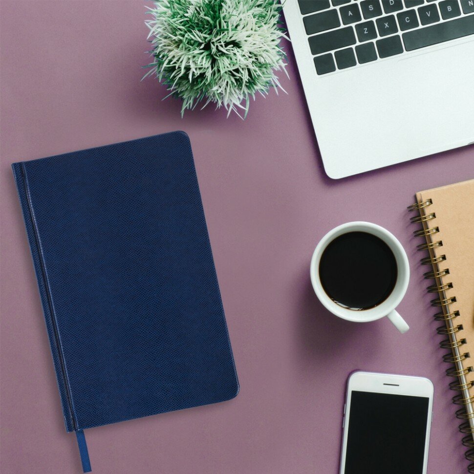 Ежедневник BRAUBERG недатированный, А5, 138х213 мм, Iguana, под зернистую кожу, 160 л., темно-синий, кремовый блок, золотой срез, 125091