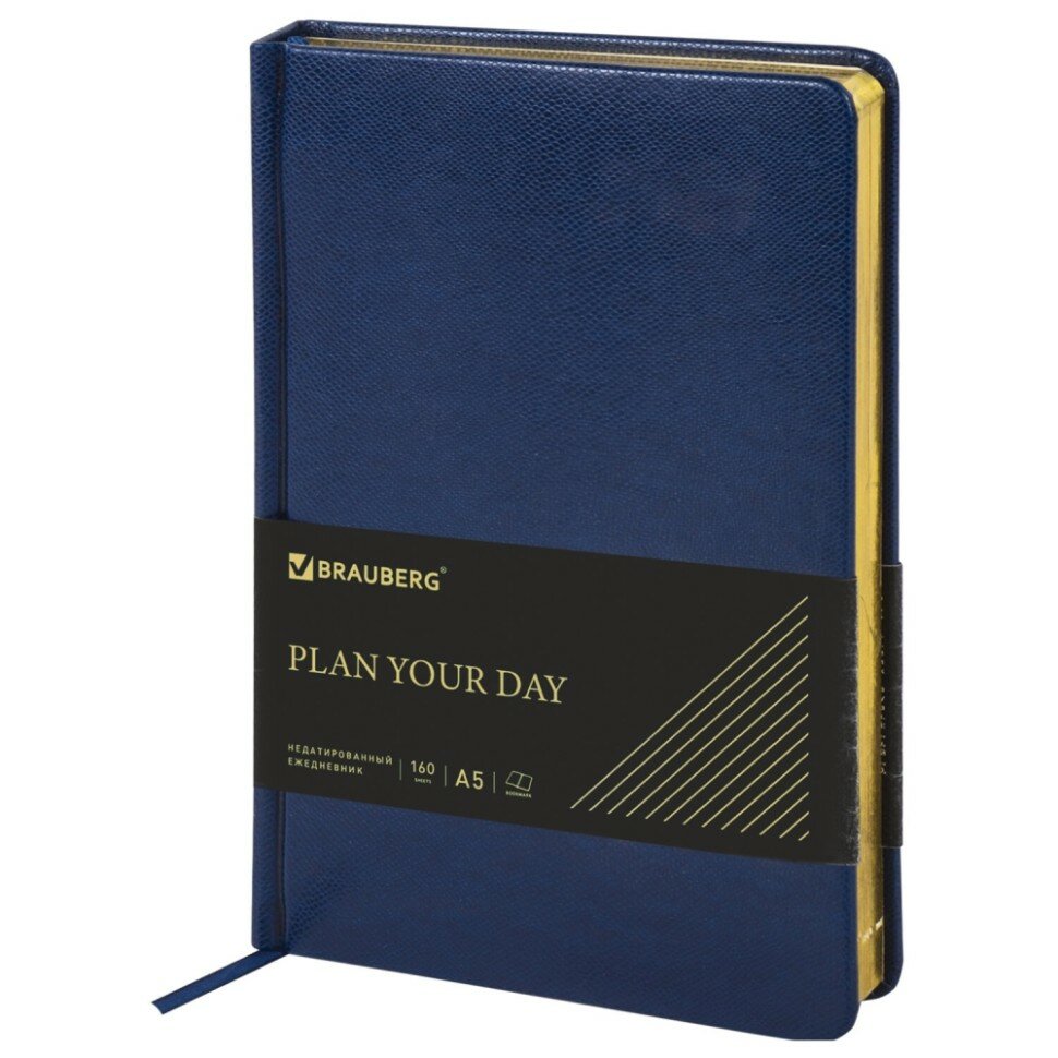 Ежедневник недатированный BRAUBERG "Iguana" A5, под зернистую кожу, 160 л., т.-син, крем. блок, зол. срез