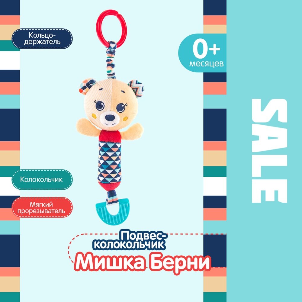 Купить Подвесная игрушка колокольчик для новорожденного Мишка Берни Happy Snail