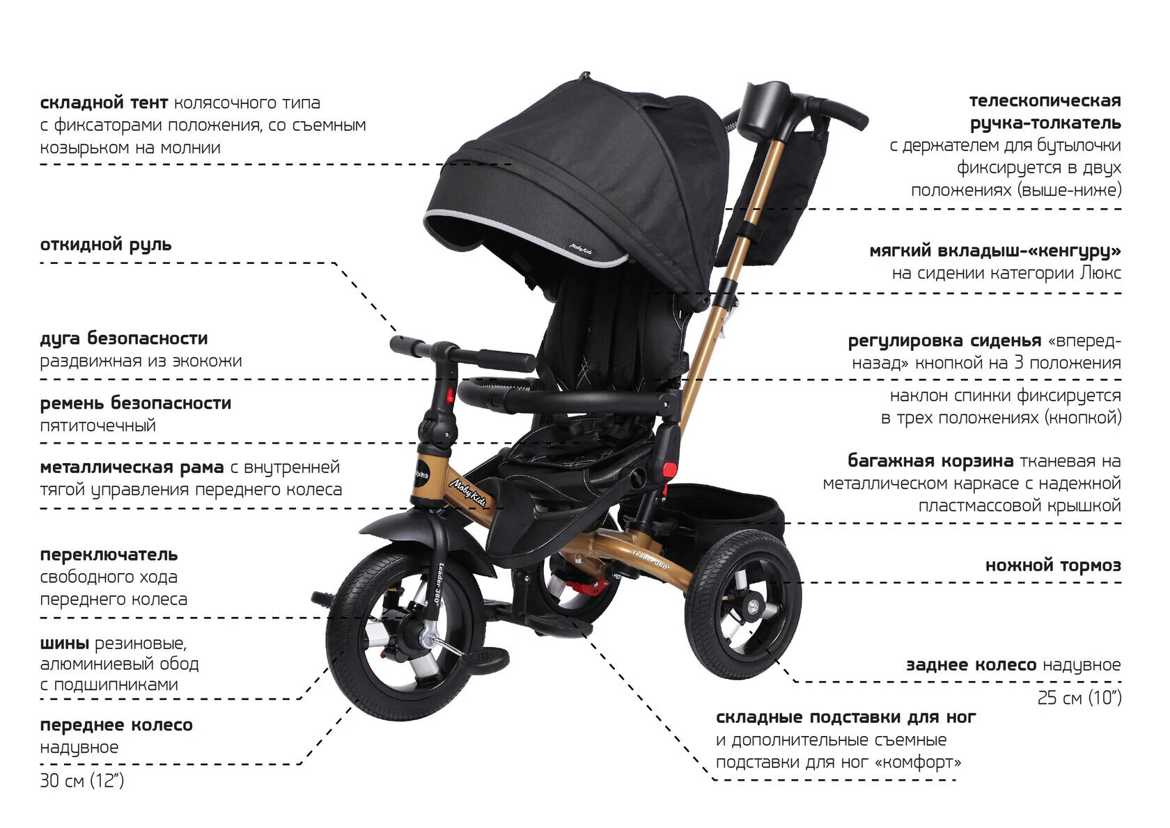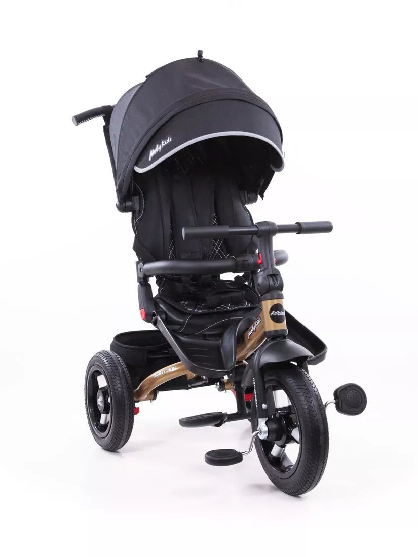 Велосипед трехколесный Moby Kids Leader 360, колеса 12 и 10 дюймов, AIR, черный, экокожа (63127)