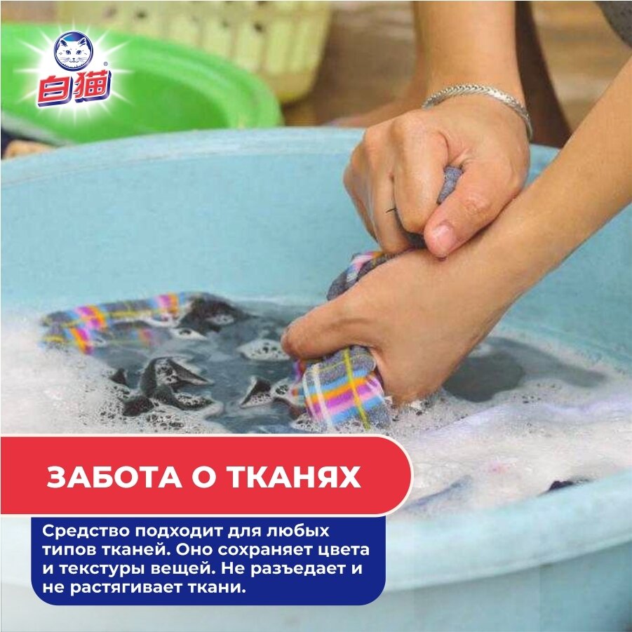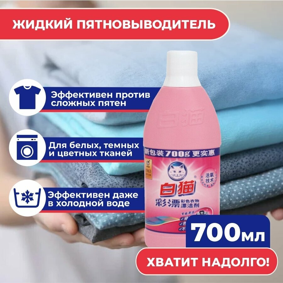 Жидкий пятновыводитель BAIMAO Whitecat для цветного белья объём 700мл, - 1шт