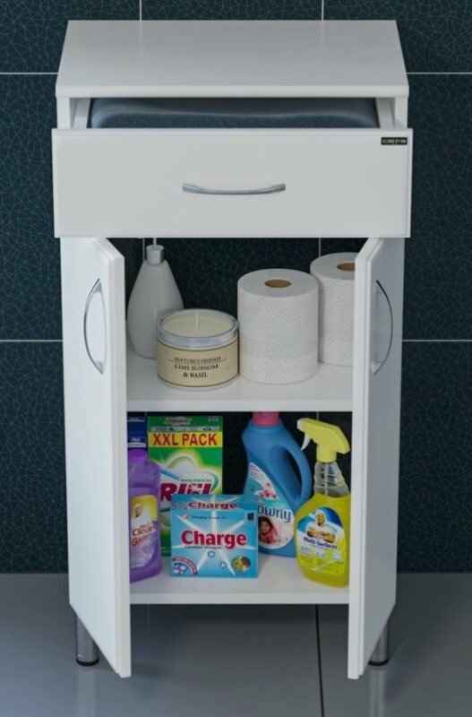 | Плюсы: | Удобная. Выдвижной ящик, отделение с полочками и конечно же необходимая корзина для белья. |