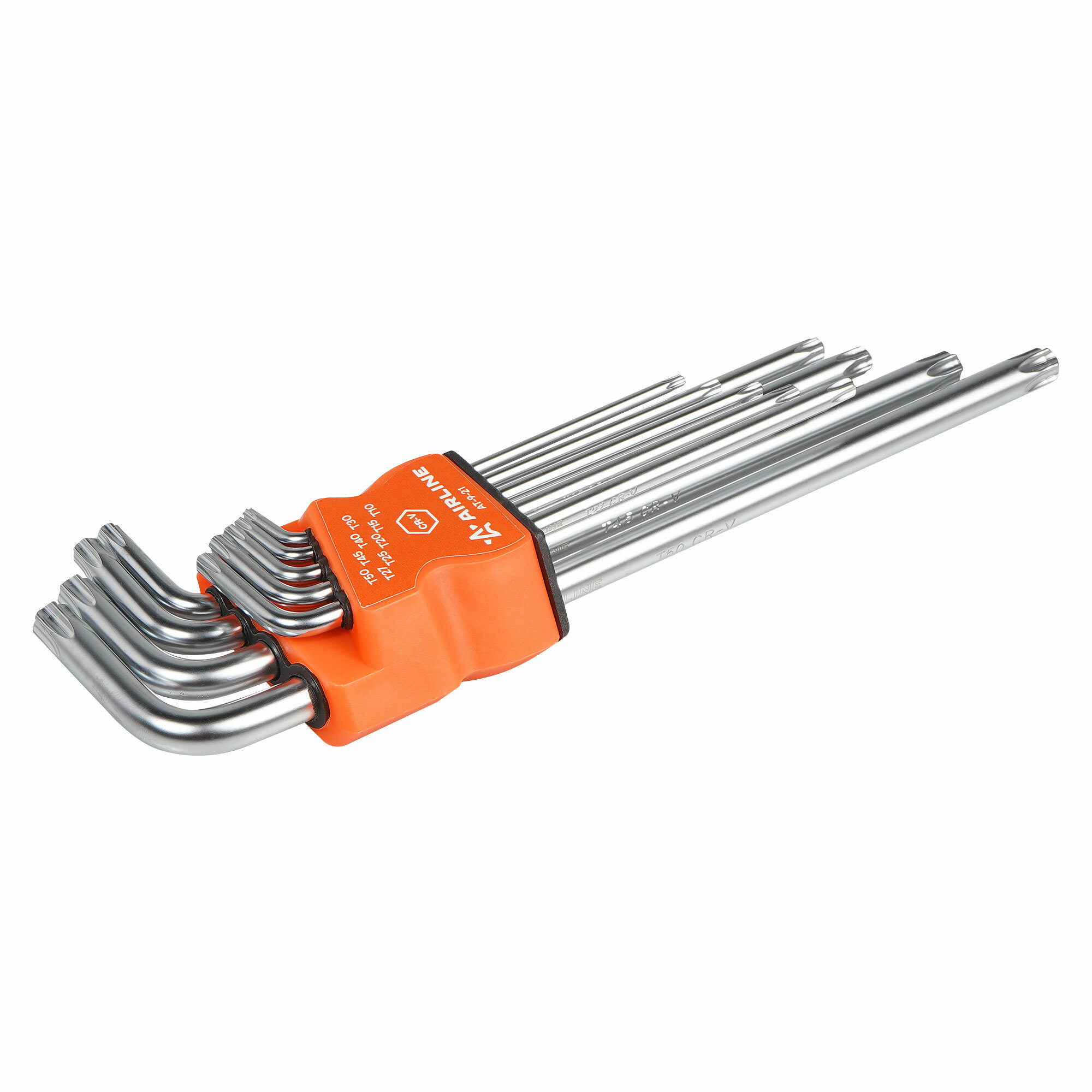 Набор Г-образных ключей TORX удлинённых Airline AT921, инбус с отверстием (9 предметов)