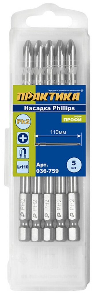 Бита отверточная ПРАКТИКА ."Профи" PH-2 х 110мм (5шт), кассета (036-759) интересное: