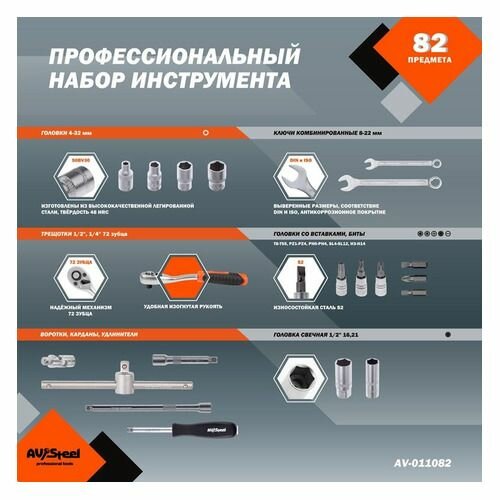 AV Steel Набор инструмента """" 82 предм. профессион. AV-011082