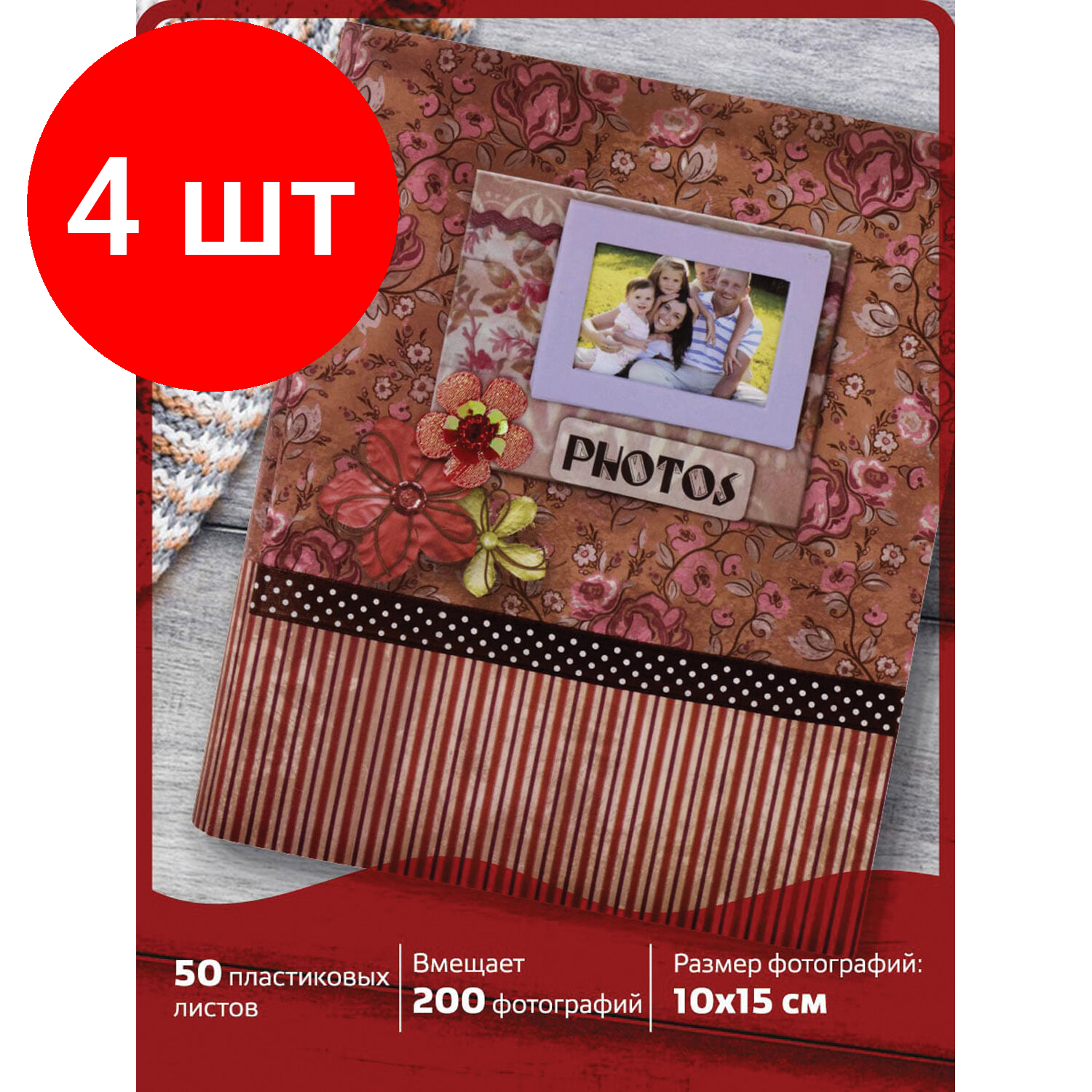 СохранитьКомплект 4 шт, Фотоальбом BRAUBERG на 200 фотографий 10х15 см, твердая обложка, "Семья", бокс, красно-коричневый, 390673 интересное: