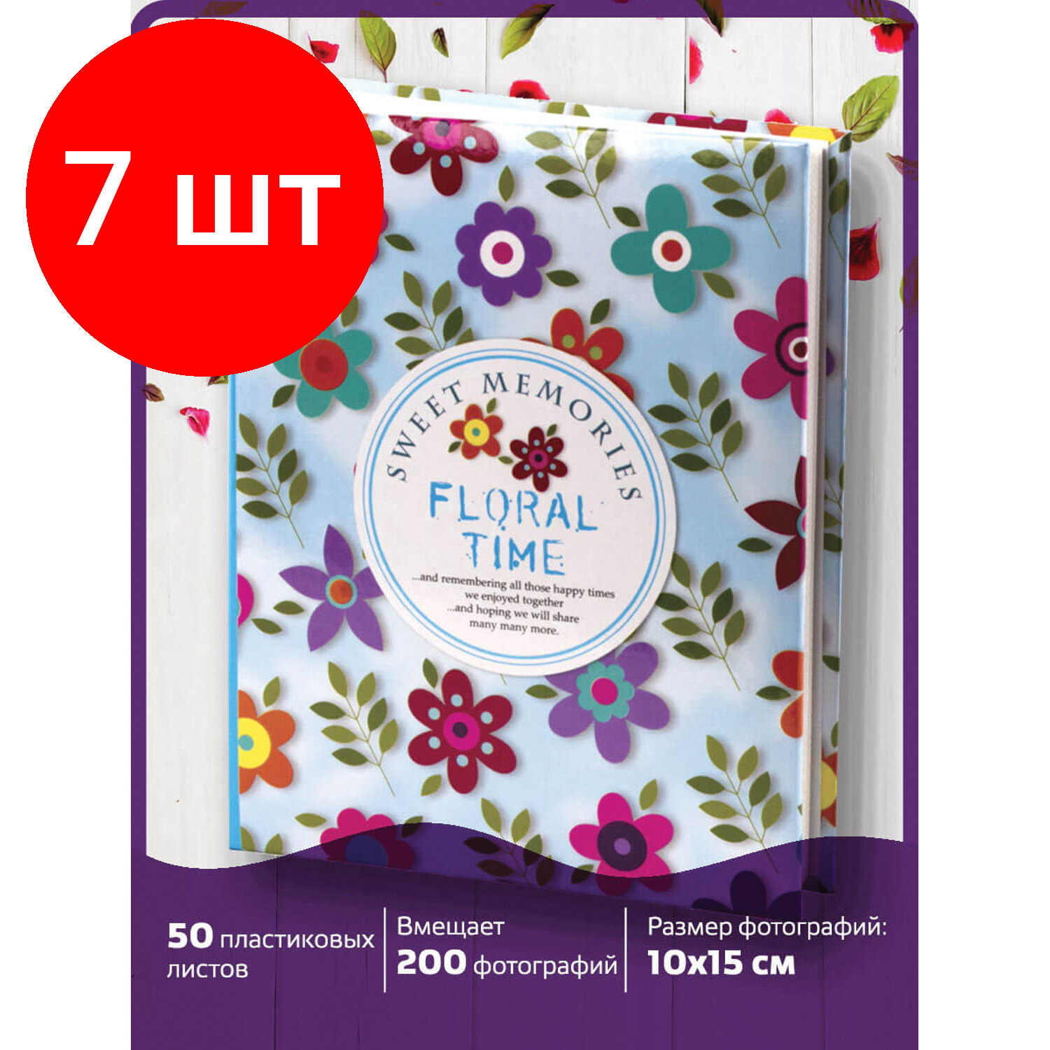 Купить Комплект 7 шт, Фотоальбом BRAUBERG на 200 фото 10х15 см, твердая обложка, "Цветочки", разноцветный, 391119