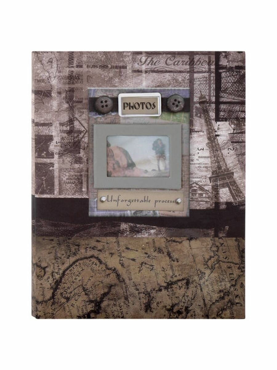 Фотоальбом семейный/свадебный/детский "Путешествие" на 200 фотографий 10x15см, твердая обложка, книжний переплет, бумажные листы с карманами, коричневый, Brauberg
