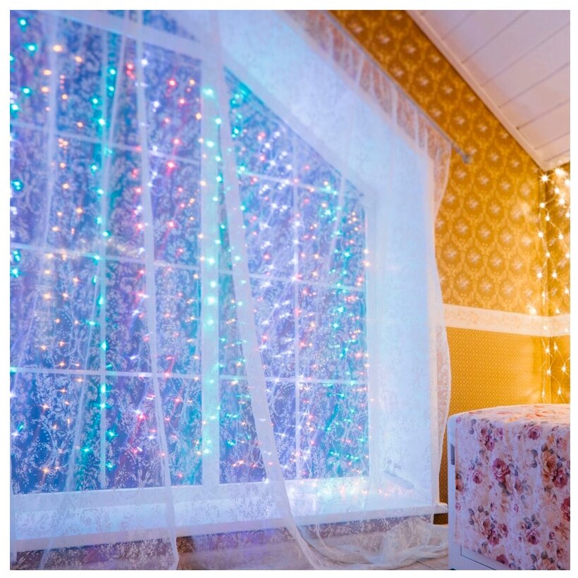 Гирлянда "Светодиодный Дождь" 2.5х2 м с 8 режимами свечения, 300 LED, прозрачный провод, 230 В, цвет свечения: Мультиколор