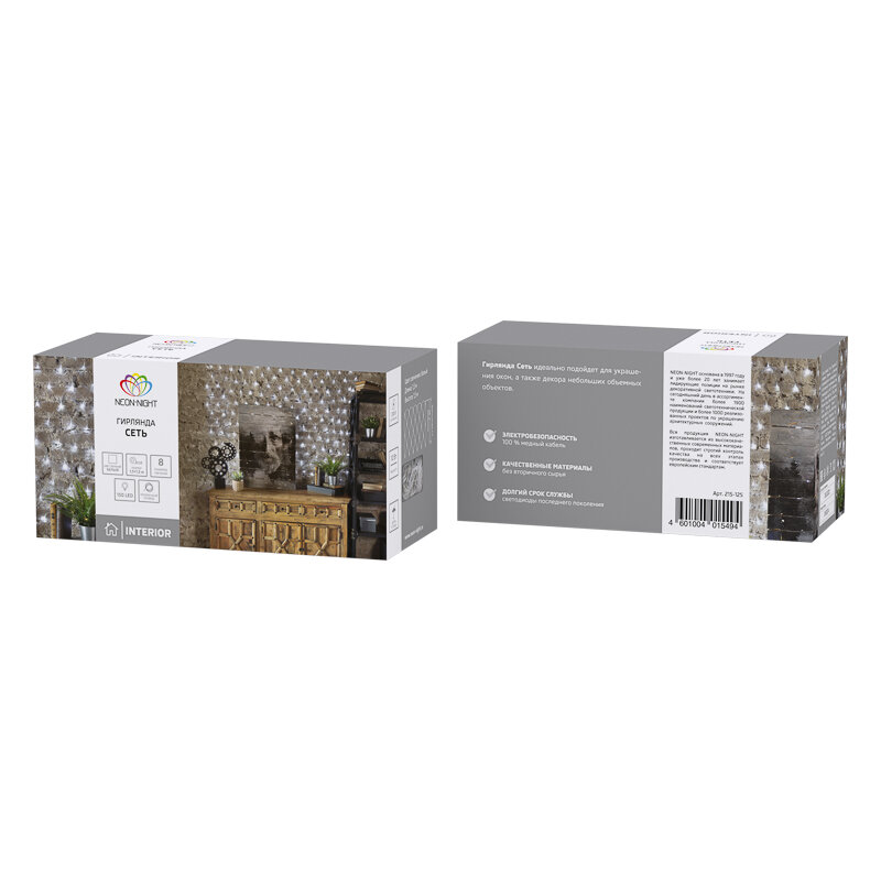 Гирлянда сетка LED NEON-NIGHT Сеть белый 8 режимов 1,5*1,5 м 215-125