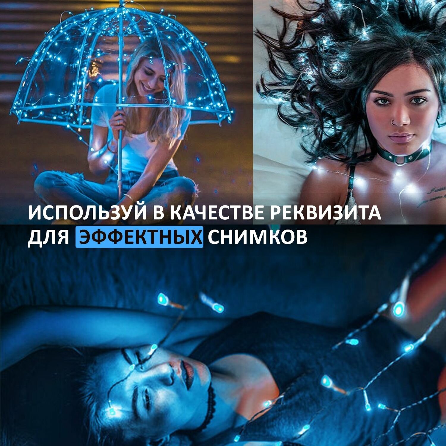 Светодиодная гирлянда Роса Neon-Night 2 м, бирюзовое свечение/ новогодние товары гирлянды / новогодняя распродажа / новогодние скидки / новогодние подарки