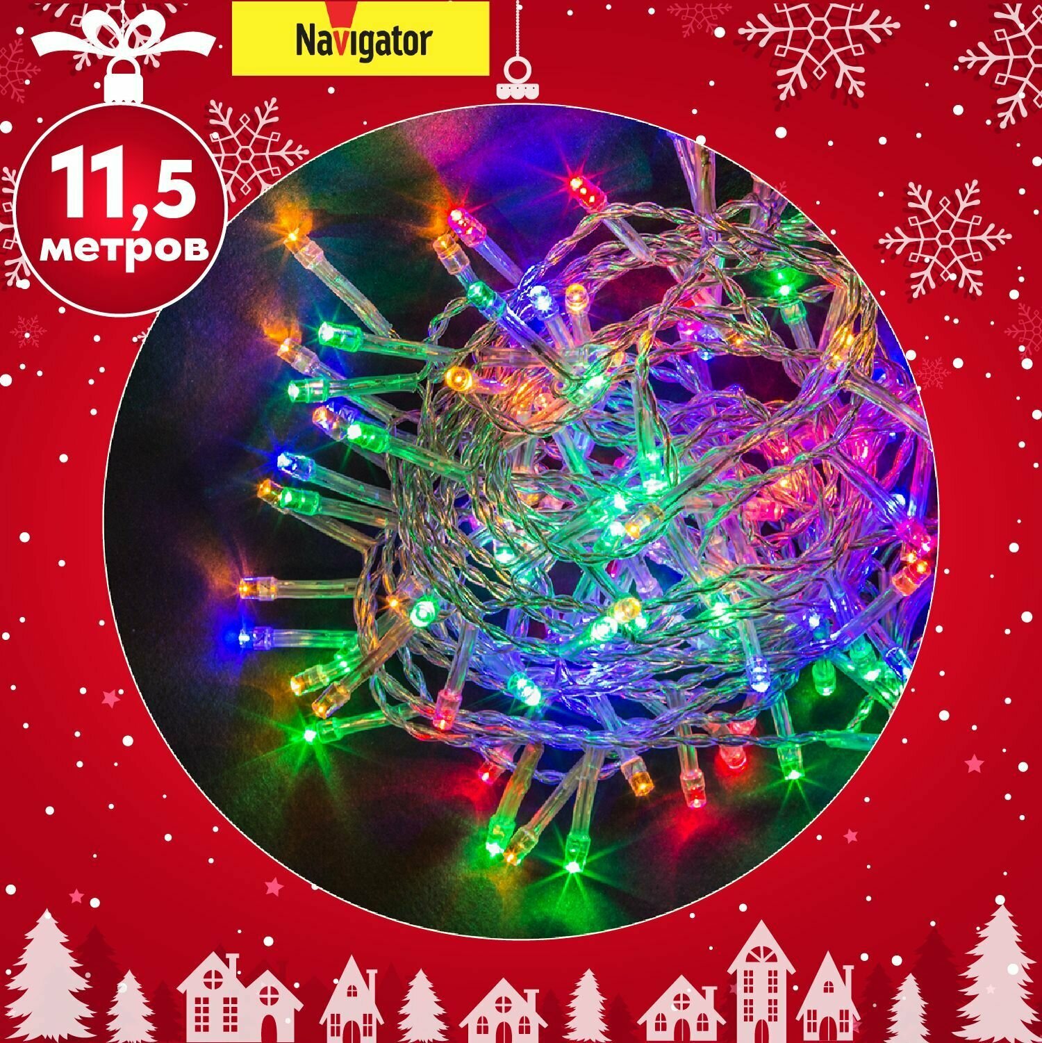 Гирлянда светодиодная Нить Navigator 61 818, 11.5 м, разноцветный свет, зеленый провод, IP20