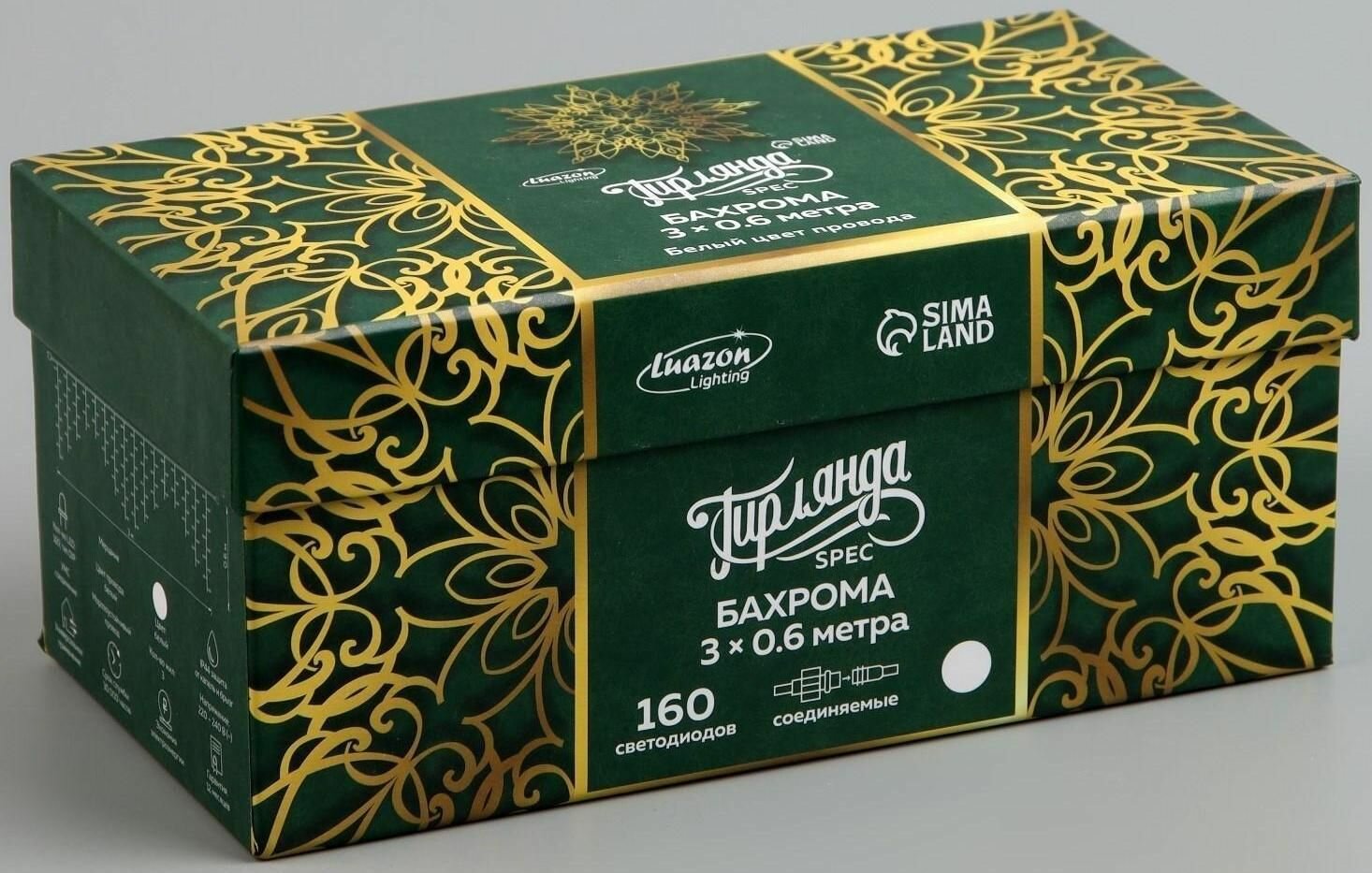 Luazon Lighting Гирлянда «Бахрома» 3 × 0.6 м, IP44, УМС, белая нить, 160 LED, свечение белое, 220 В