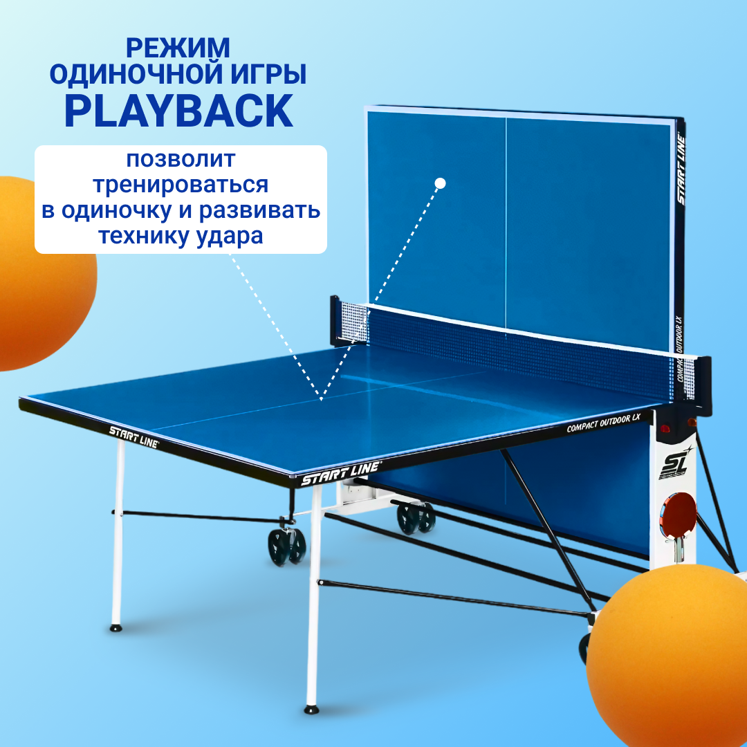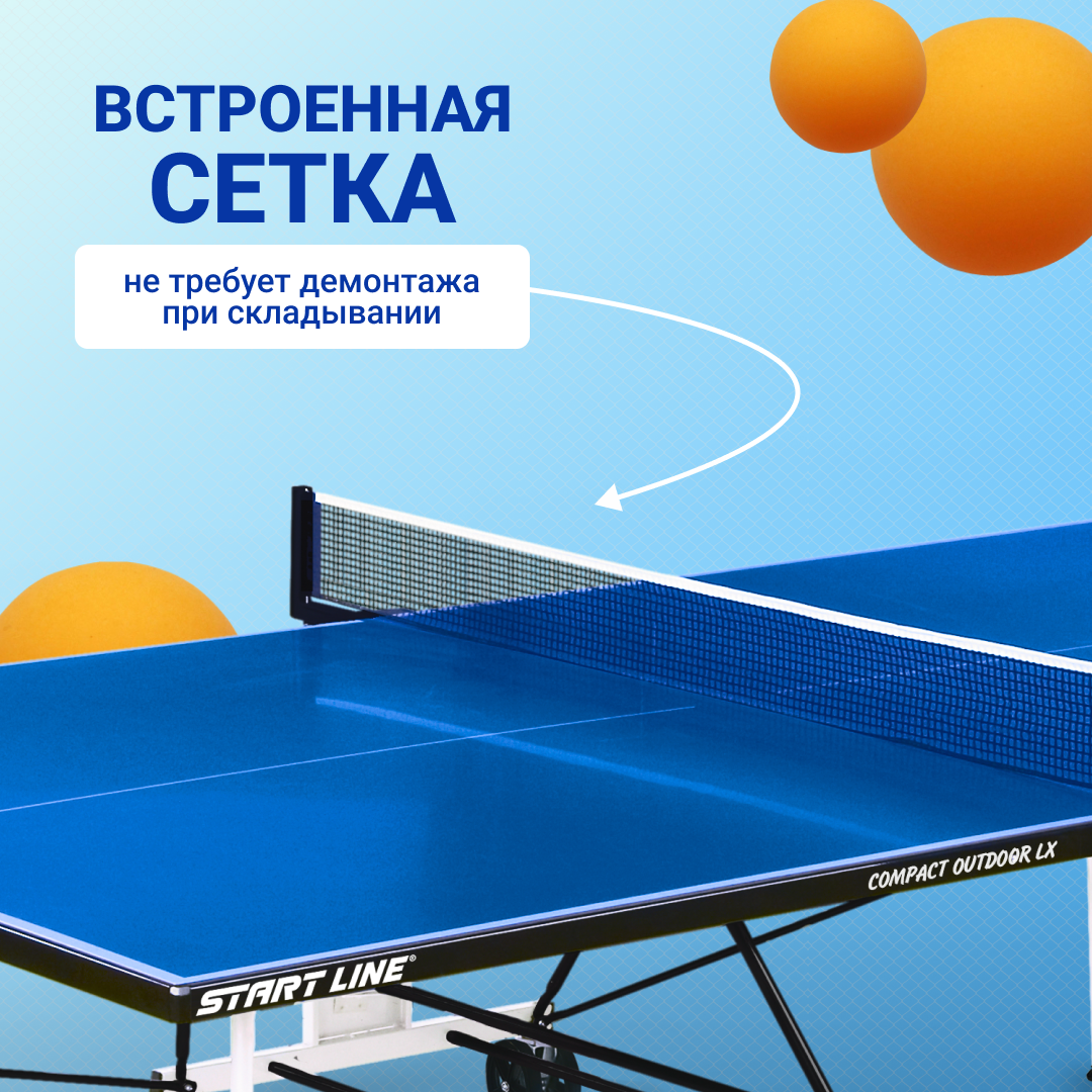 СохранитьТеннисный стол Start Line Compact Outdoor LX синий, всепогодный, с встроенной сеткой интересное:
