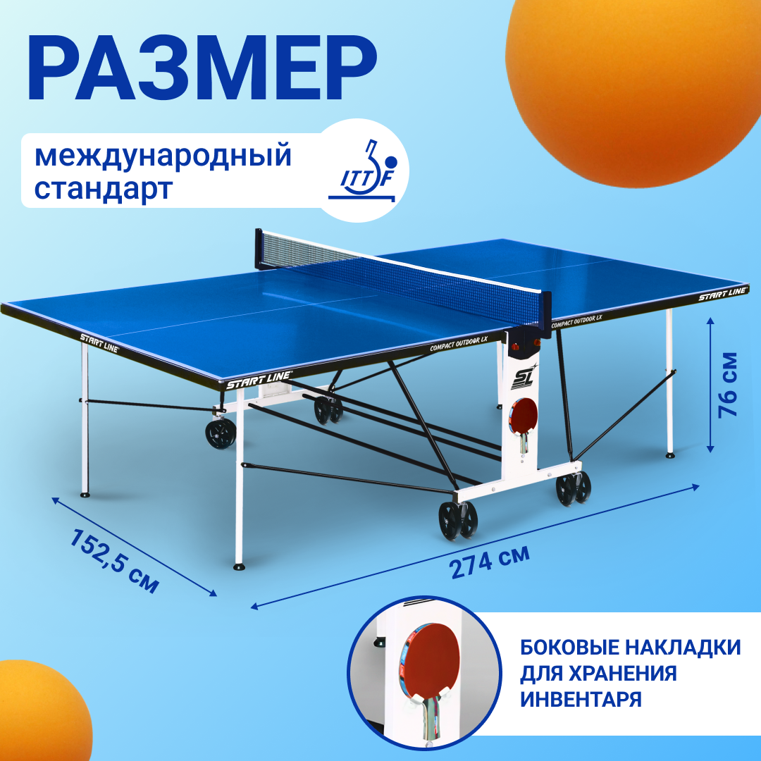 Ниже Вы можете прочитать отзывы на Теннисный стол Start Line Compact Outdoor LX синий, всепогодный, с встроенной сеткой, ознакомится с подробными характеристиками, посмотреть интересные обзоры и фотографии на Теннисный стол Start Line Compact Outdoor LX синий, всепогодный, с встроенной сеткой.