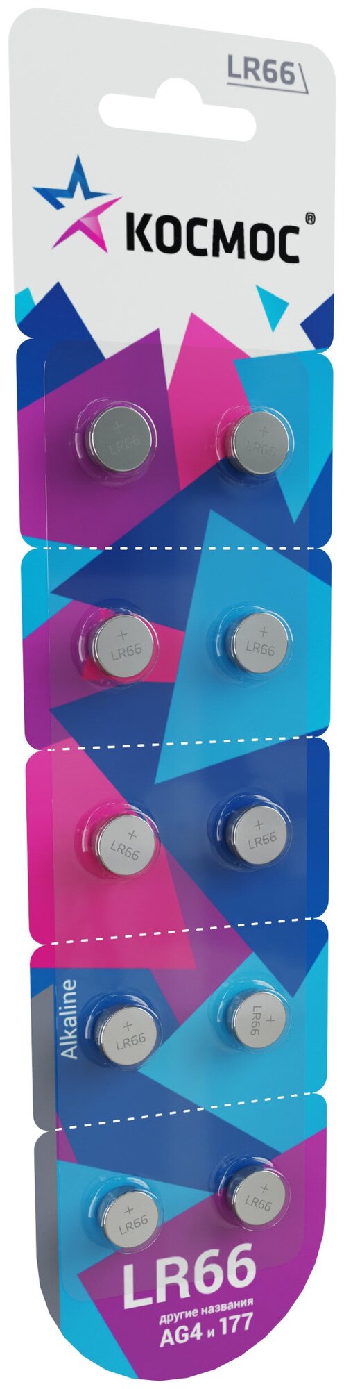 Набор алкалиновых батареек космос G4(L626, LR66, 177, 377) блистер 10 шт.